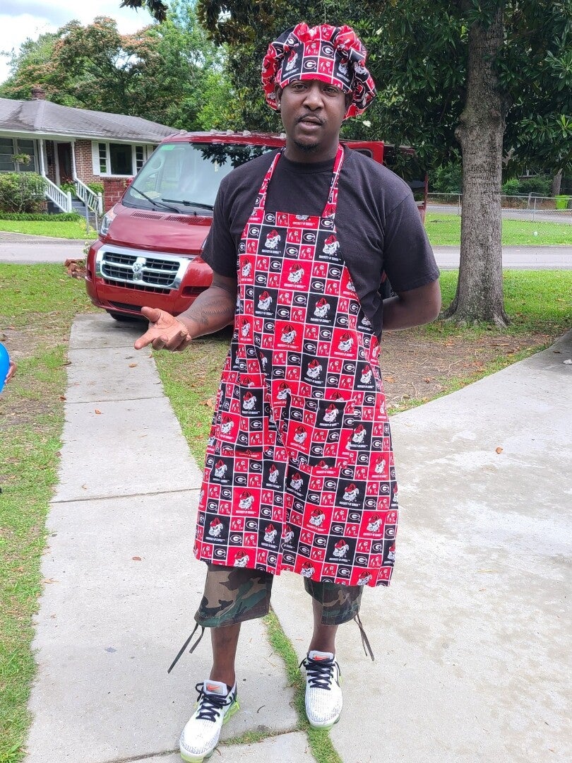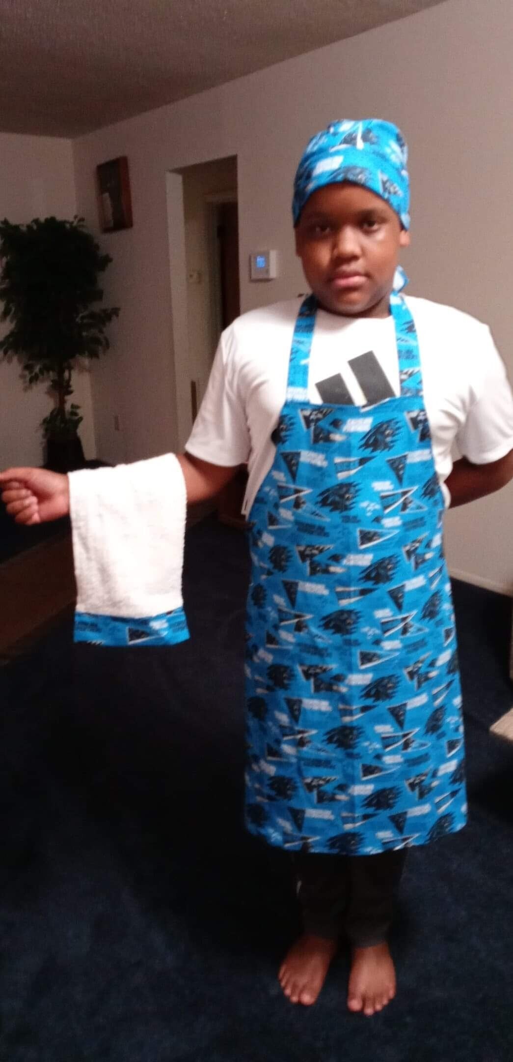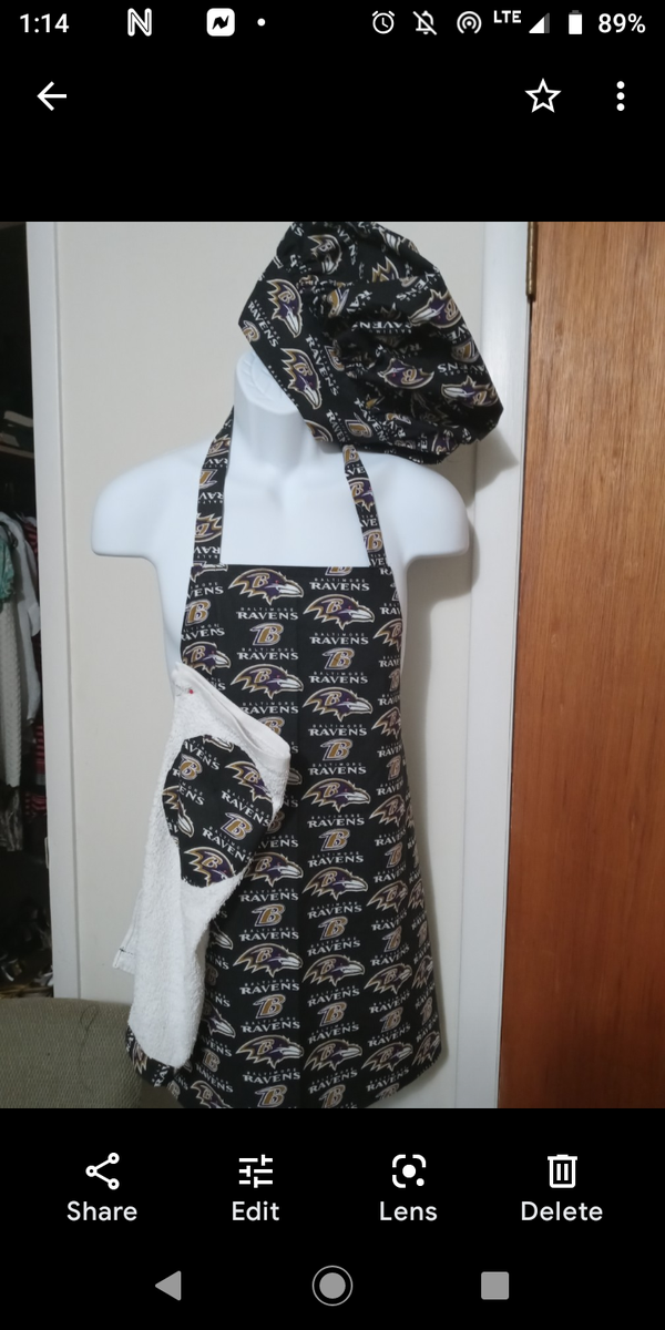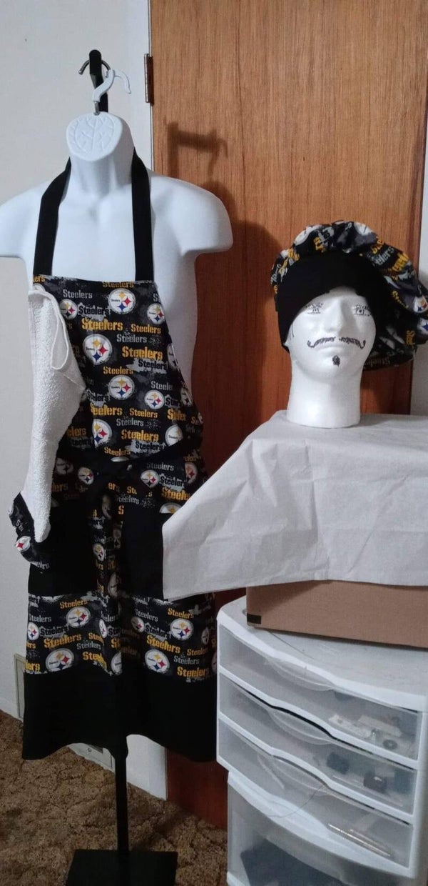 Apron sets can be made of different team fabric...$35 plain aprons $25